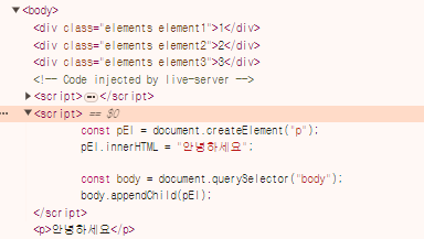 pEl.innerHTML = "안녕하세요";