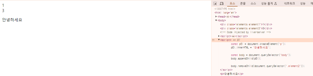 두 번째 요소를 삭제하기 위해서 document.querySelector를 사용해서 2번째 요소를 불러냈다.