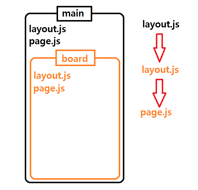 /main/board 경로가 구성되어 있다고 했을 때, board 페이지가 렌더링되면 main의 layout이 렌더링되고