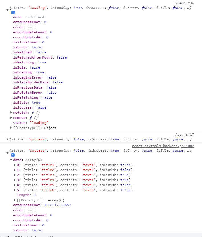 query 안에는 data, isLoading, isSuccess, isError 등 많은 정보를 가지고 있다.