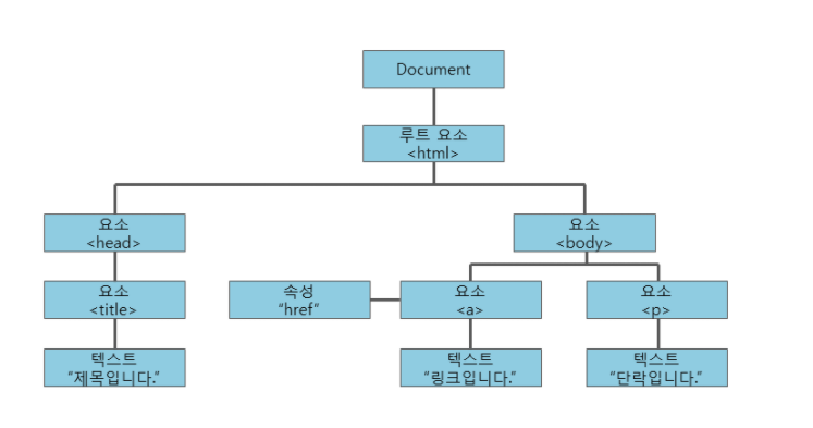 즉, DOM은 HTML과 스크립트언어(JavaScript)를 이어주는 역할을 하고 있다.