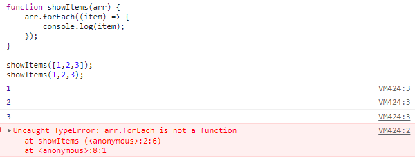 당연히 배열을 넘겨줬을 때는 1, 2, 3 순서대로 잘 나오지만, 배열이 아닌 값을 보냈을 때는 오류가 발생한다.
