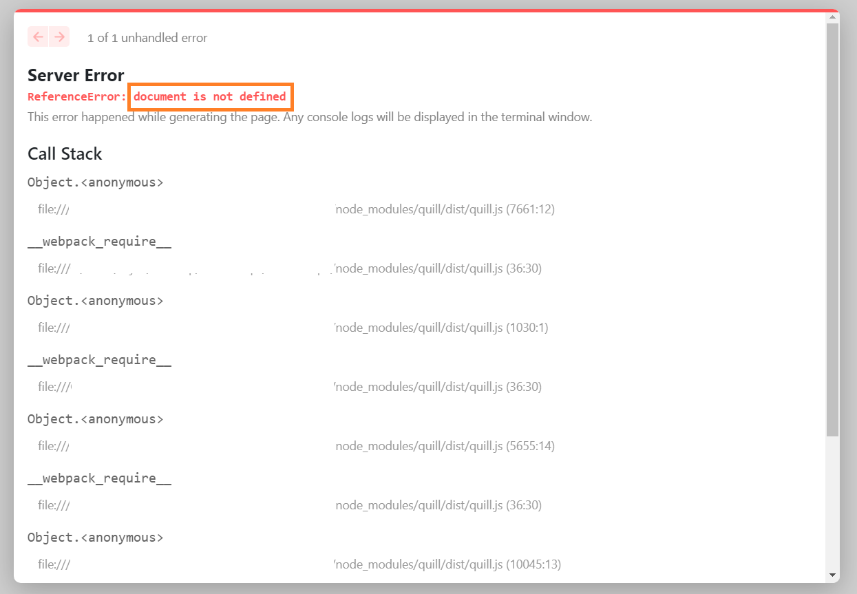 이번 섹션에서는 에디터의 사용법보다는, Next.js에서 React Quill 같은 웹 에디터를 사용할 때 직면할 수 있는 오류에 대해서 이야기하려고 한다.